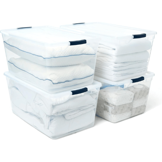 5. Rubbermaid Cleverstore 95 Qt Clear Storage Bins with Lids